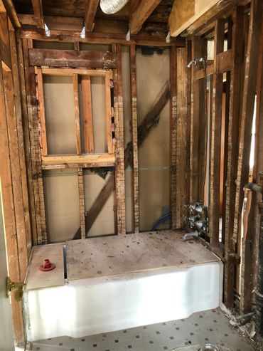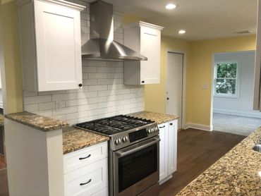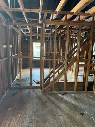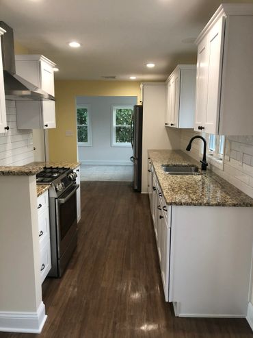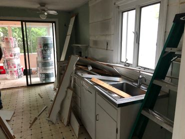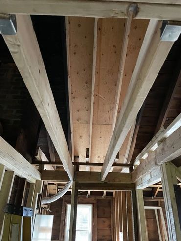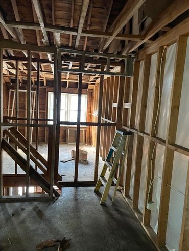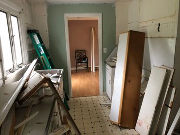This home had a tree fall on it, which destroyed the roof and subsequently much of the interior. We gutted and remodeled the interior spaces, new plumbing and electric, appliances, countertops etc... new house wrap and sheathing, a new roof and siding.